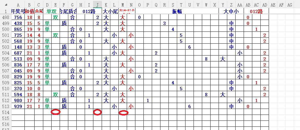 如上图2,大中小分析来看,中小数尾3456尾,可以考虑定3456尾。