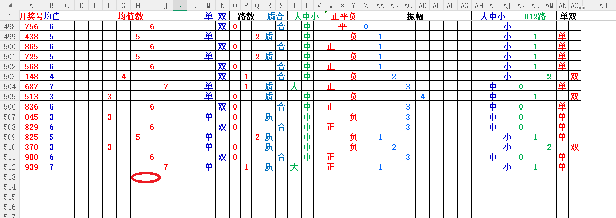 如上图1,大中小分析,均值小中大数比较好,也就是 3456 均值最好,重点:45。