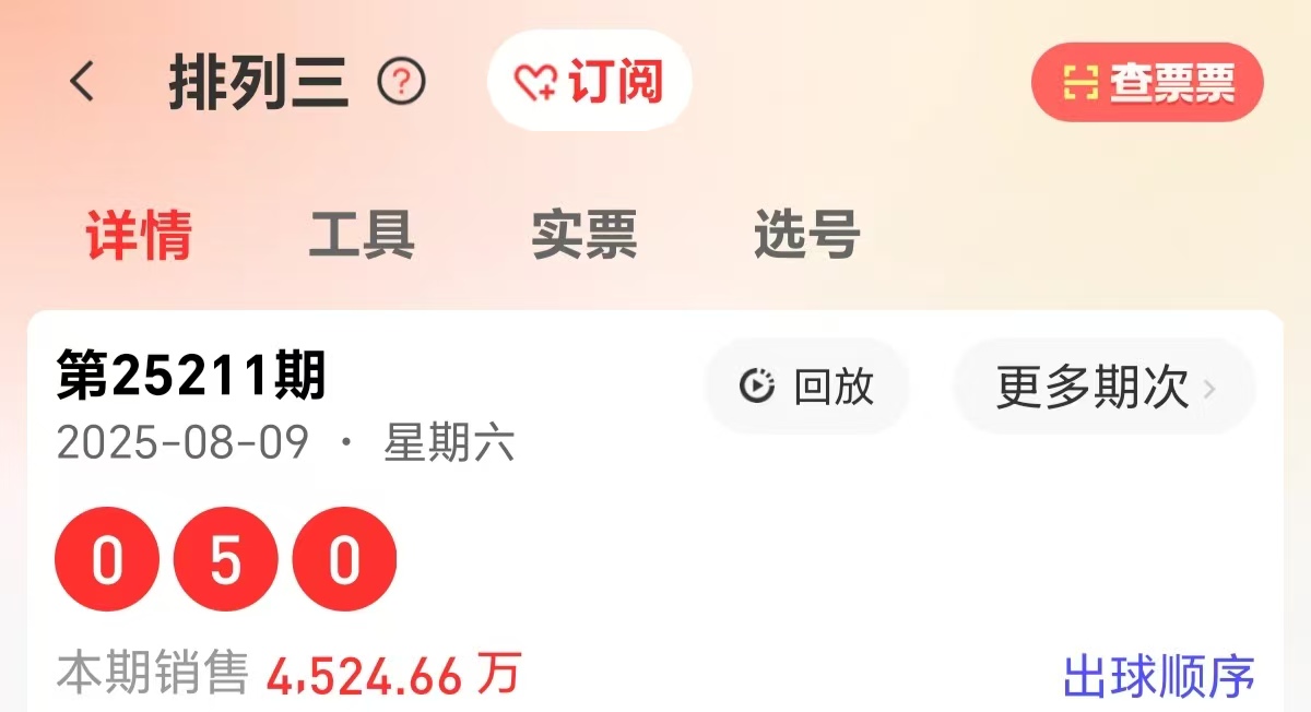 211期开奖号为050,形态组三,质合比1:2,和值5,跨度5,012路比为2:0:1,大小比1:2,奇偶比1:2