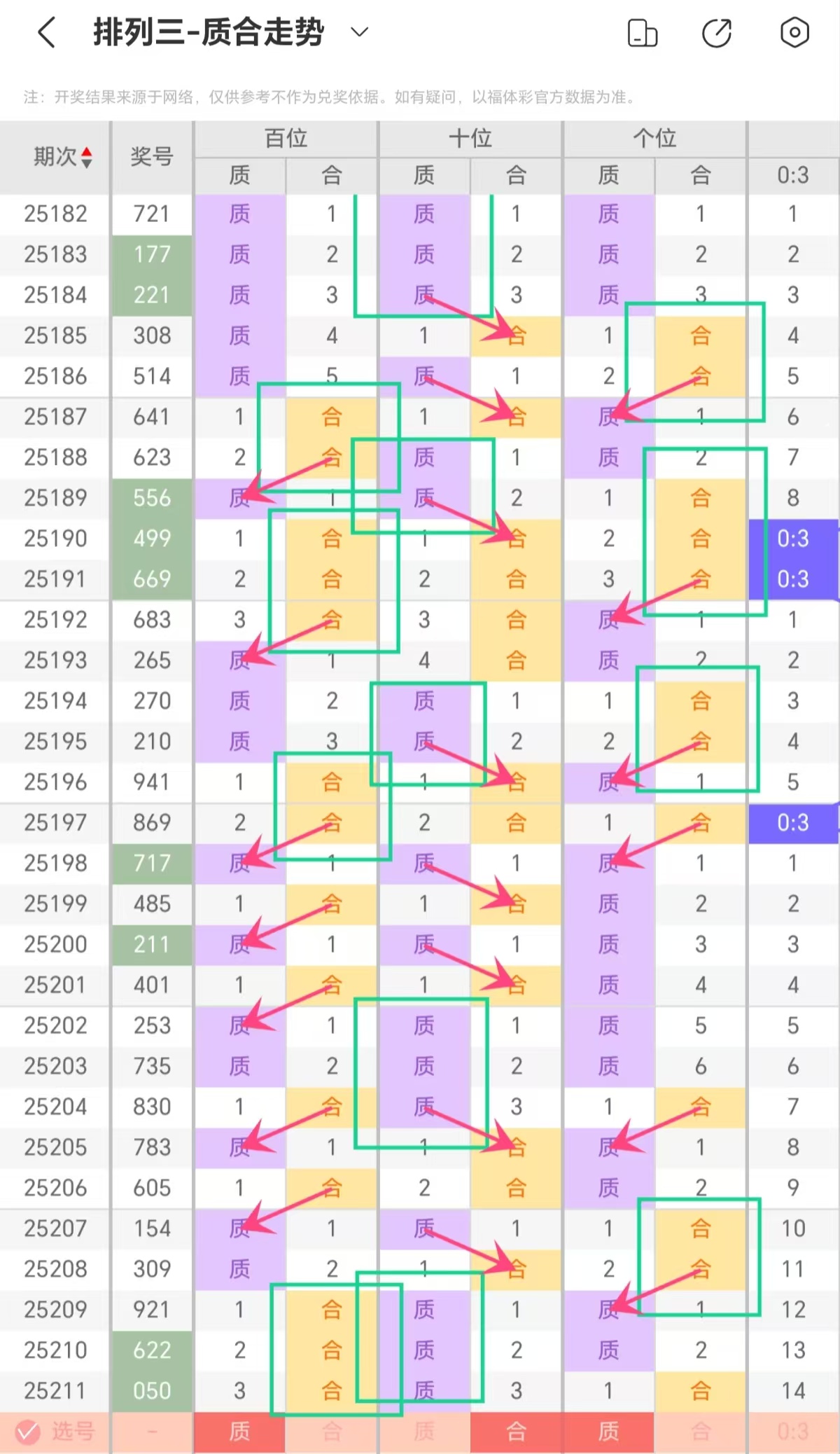 根据上期开出合数连下分析,百位质合交替有迹可循。质数、合数并非持续主导,连下后常伴随回补。连下阶段,某一属性持续出号,展现趋势性;回补时,另一属性介入,打破单极统治。这种交替非机械重复,连下周期、回补速度灵活,有时质数连下后,合数快速回补;有时合数连下周期长,让百位走势在动态中,为出号倾向提供多元参考,每一次连下与回补的切换,本期参考回补质数(12357)