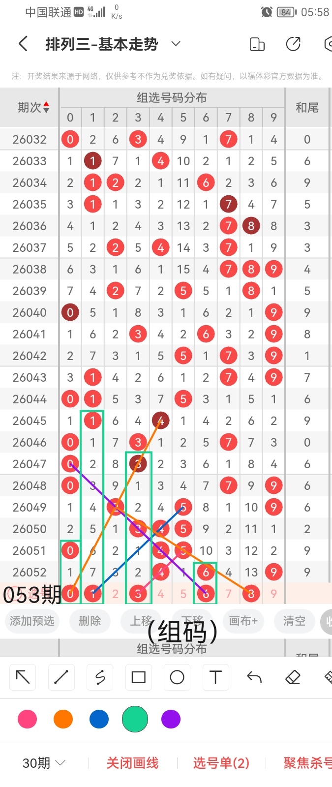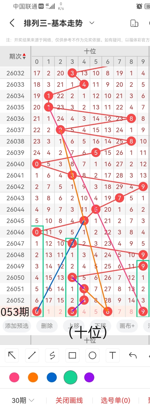通过以上对上期的简单回顾,下面进入体彩排列三第2026053期(下面简称本期)的选号分析: