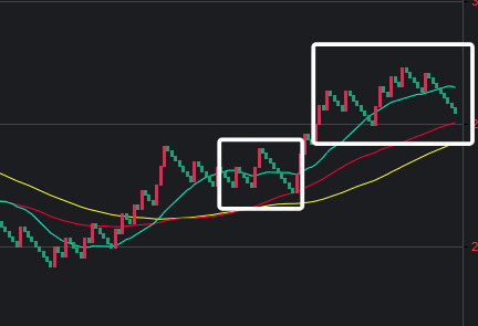 可以看到一些规律,在粉框中,如果一致,那么接下来这些跨度也会出。