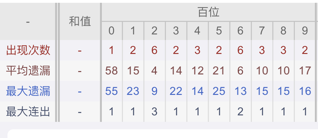 从近30期数据我们可以看出百位26是热码,这个冷热码数据我们结合之后的分析再利用它