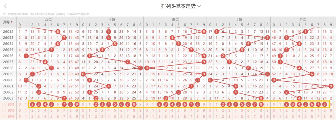 带着粉丝发大财体彩排3、排5第26064期选号条件分析