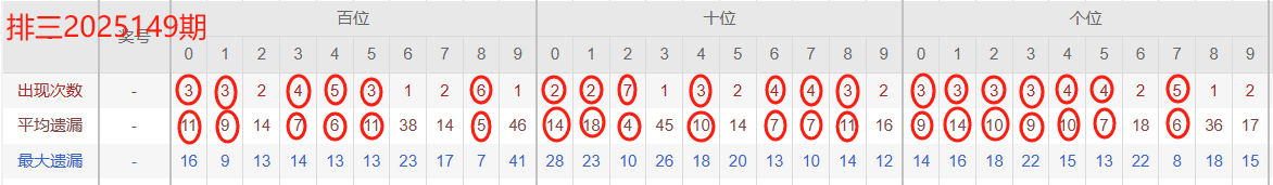 2025147期开奖号码557,我们可以看出近30期百位5出现3次,十位5出现2次,个位7出现5次。