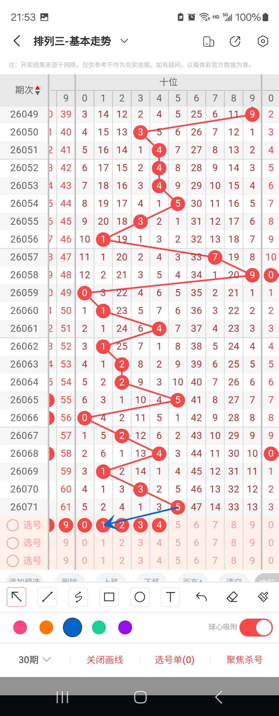 个位走势标注如下图;