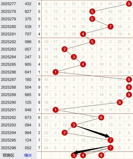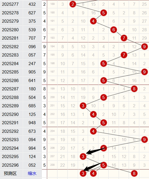 上期跨度为5,近5期跨度开出情况:第25292期开出4,属于偶数,1路号码,金属性;第25293期开出9,属于奇数,0路号码,金属性;第25294期开出5,属于奇数,2路号码,土属性;第25295期开出3,属于奇数,0路号码,木属性;第25296期开出5,属于奇数,2路号码,土属性;