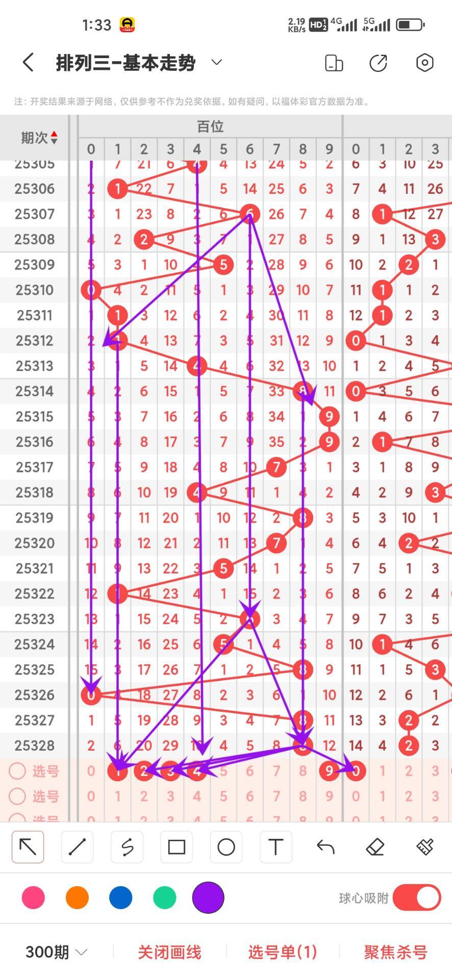 2025329期,上期百位开出偶数8,我们通过走势图来看300期012路中下号的数据,0路号码的最大总数是105次,0369分别在100期内下号分别是21,26,30,28,,这几个数差别不大,我们再来看1路号码最大总数是100,147号码分别是,38,27,35,4下号次数最少,再回过头来看2路号最大总数是95次,258号码分别是32,30,33次,这三个数之间差别不大,在来看百位平均遗漏,目前0路遗漏的总数是43次,1路遗漏的总数是25,2路遗漏总数26,百位目前大号热度依然很高,我们可以关注下,通过上面的走势分析我们可以看出目前百位大号4578号码走势比较好,2439号码走势就有点冷淡,今天百位我们重点关注12349,具体看下面走势图