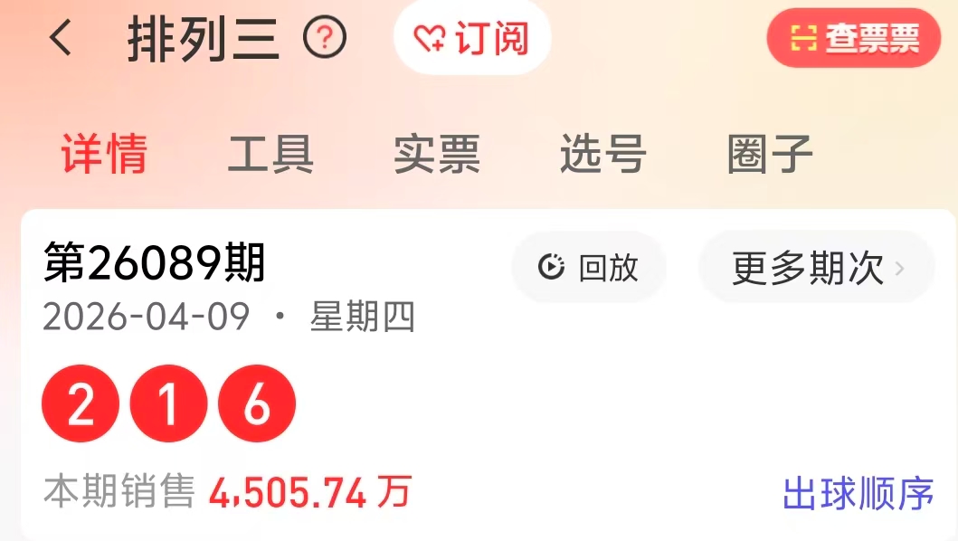 开奖号码:216