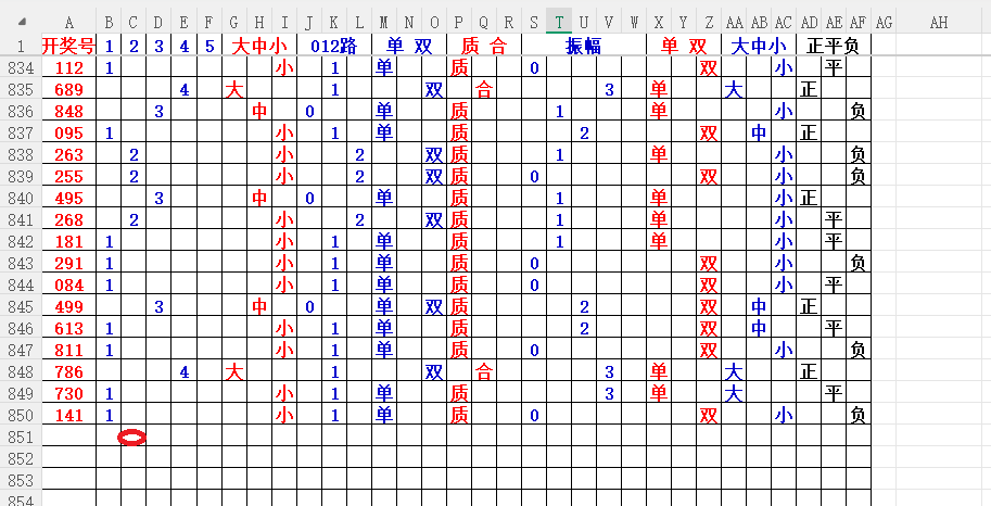 如上图2,012路分析,01路尾走比较好,关注34567尾;