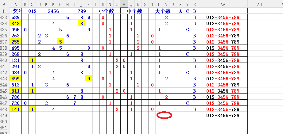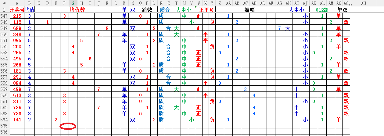 如上图1,大中小分析,均值小中大数比较好,也就是 3456 均值最好,重点:45。