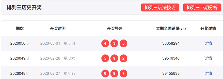体彩排列3上一期,开奖号码为435,形态为组六,奇偶比为2:1,012路数值表现为102,和值12,和尾2,跨度2。