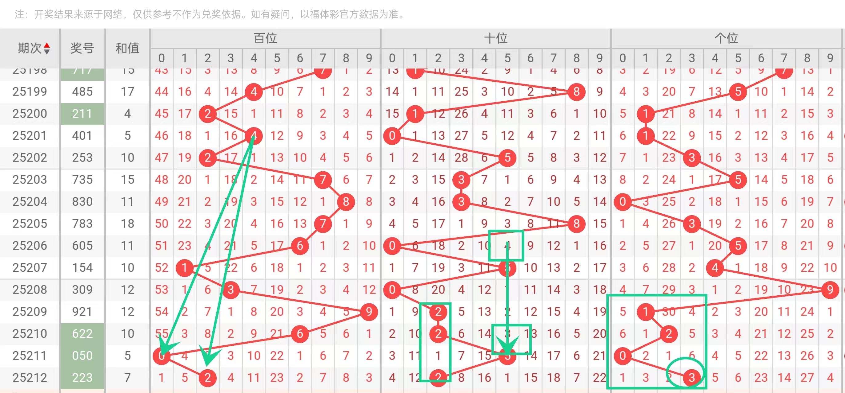 最新一期奖号“2,2,3”完美契合热号趋势:百位和十位均为热号2,个位3是次热号(5次)。这显示开奖对热号有延续性,尤其百位2在近10期出现4次,热度不减。