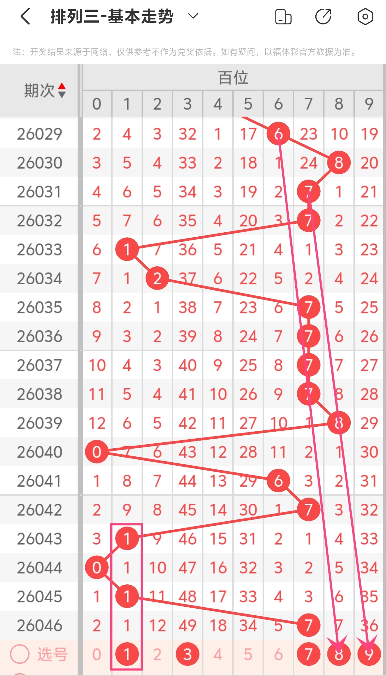 下面是体彩排列3的百位走势图分析