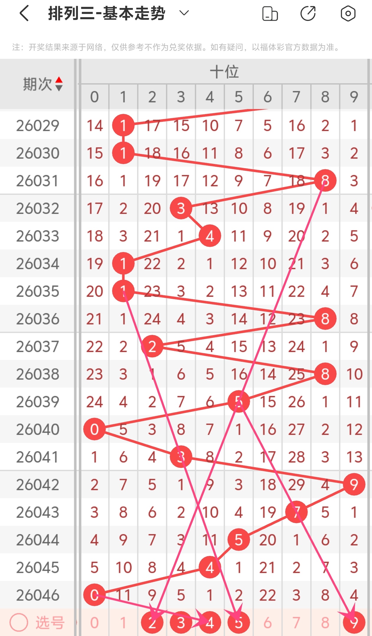 下面是体彩排列3的个位走势图分析