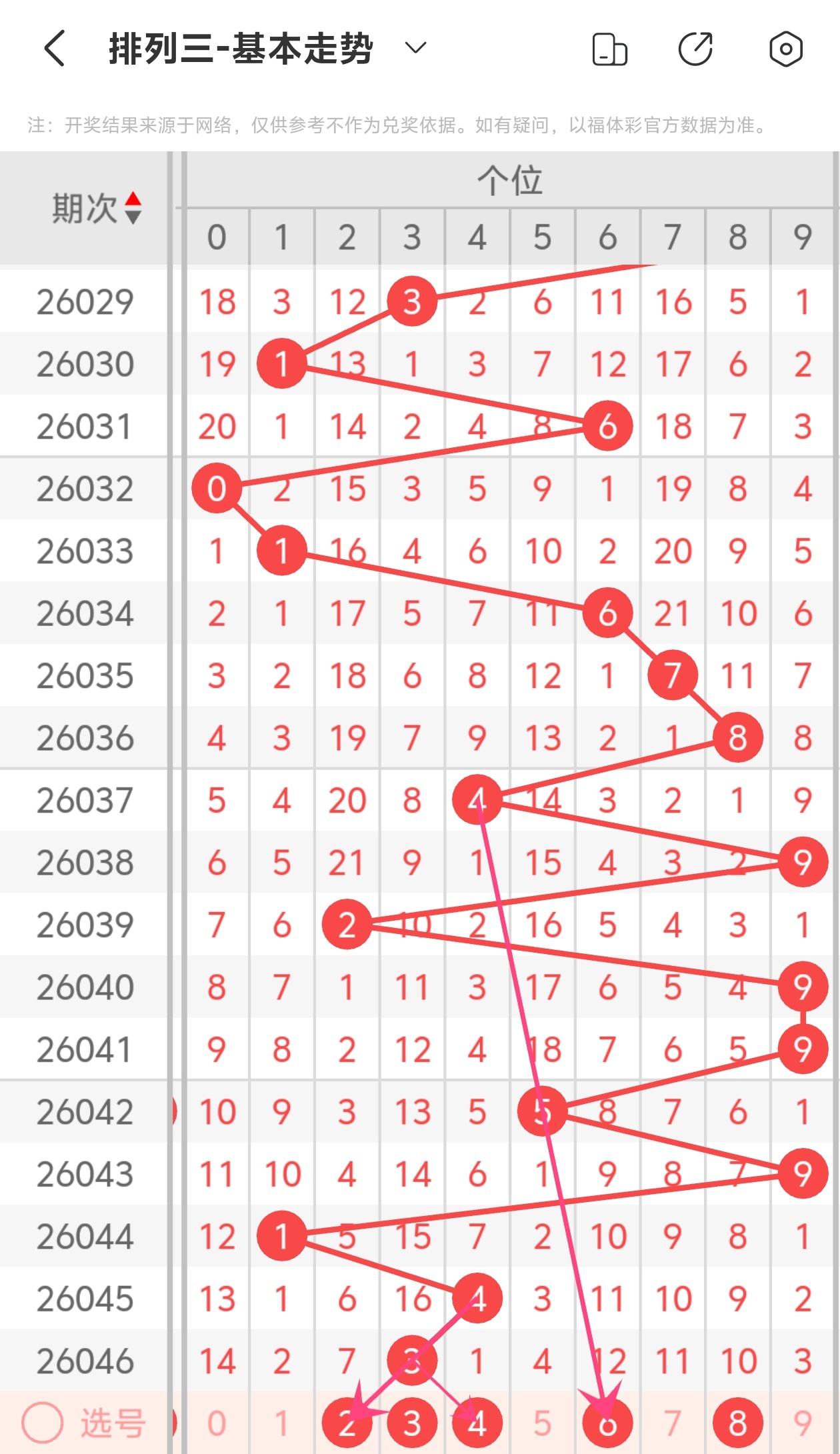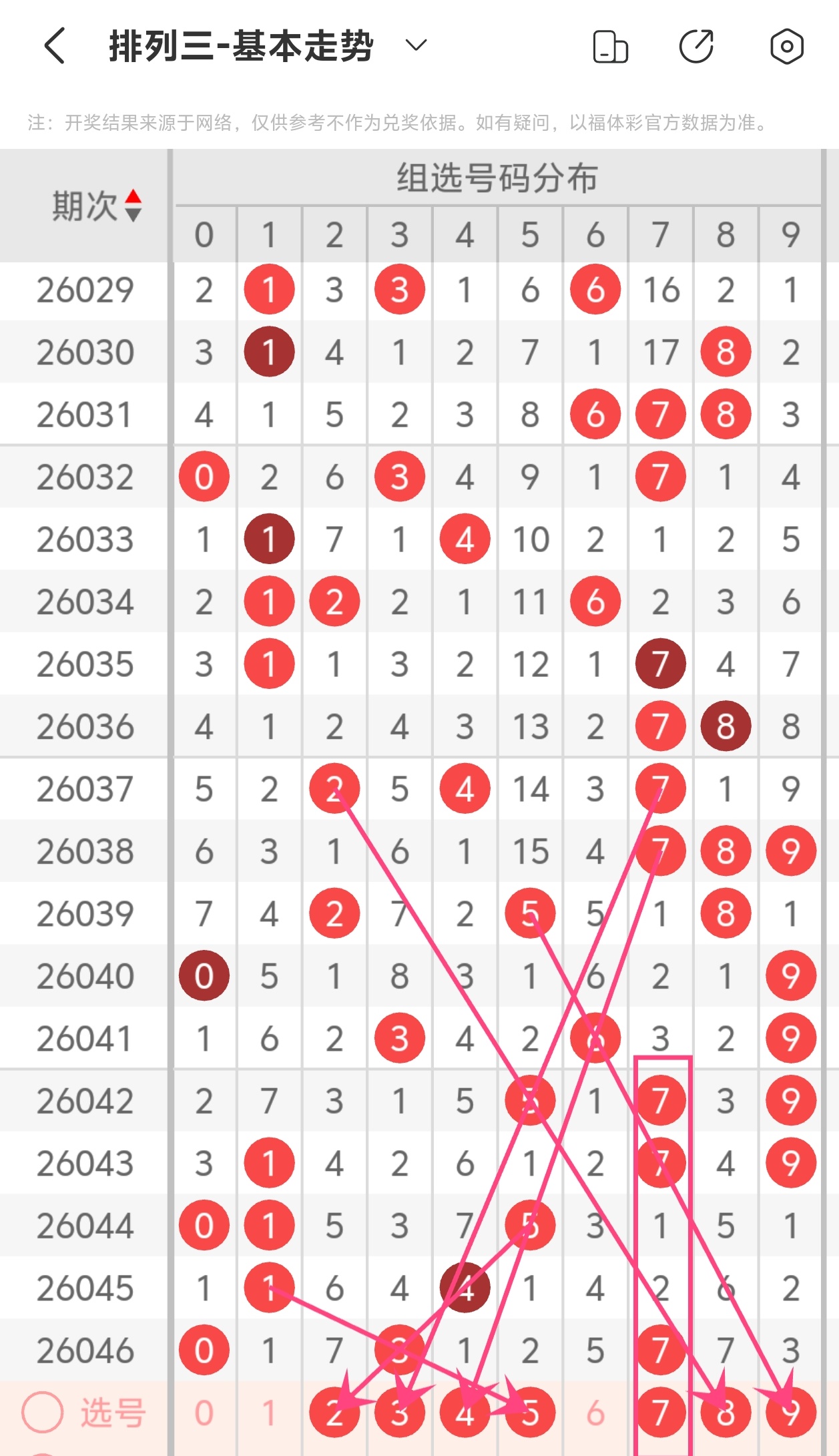 通过以上简单分析,我们看下26047期号码的定位分析: