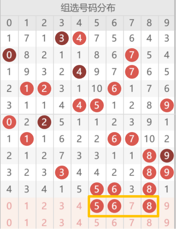十位:近 20 期十位热码:6、8(凸形态核心大号);温码:7;回补小号:1、2、3、4;冷码:0、5、9(剔除);十位为凸形态最大位,纳入 6、7、8 大号,完美适配中间大结构;奇数 4 个(1、3、7)、偶数 3 个(2、4、6、8),匹配 2 奇 1 偶走势。