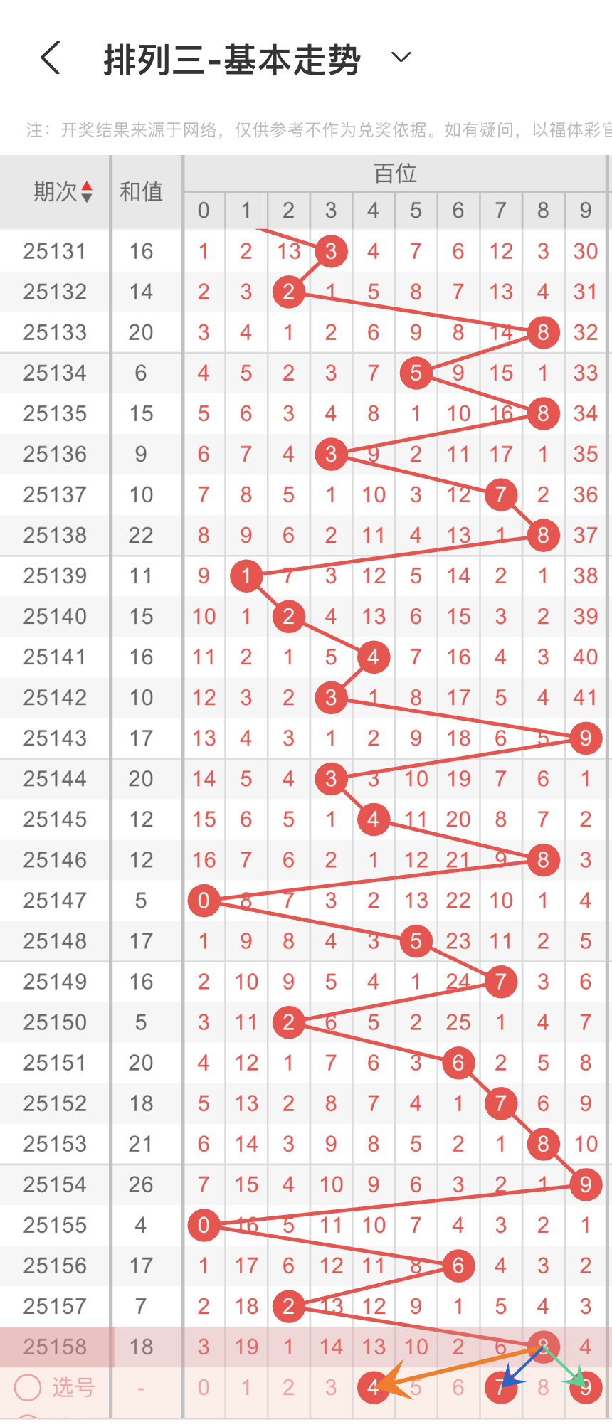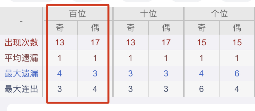 从近30期数据我们可以看出百位238是热码,这个冷热码数据我们结合之后的分析再利用它