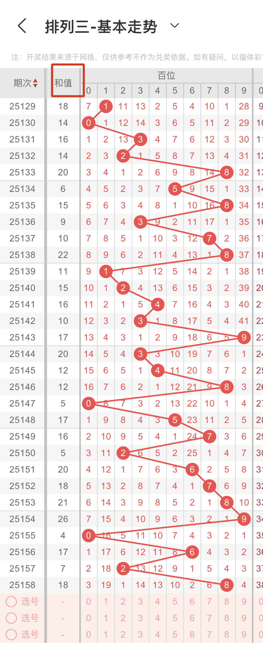 我们将0-9范围的和值称为小和值,10-18范围称为中和值,19到27范围称为大和值,那么近30期小中大和值为6比18比6,所以中和值占优势,所以推荐6分运气直选一组423