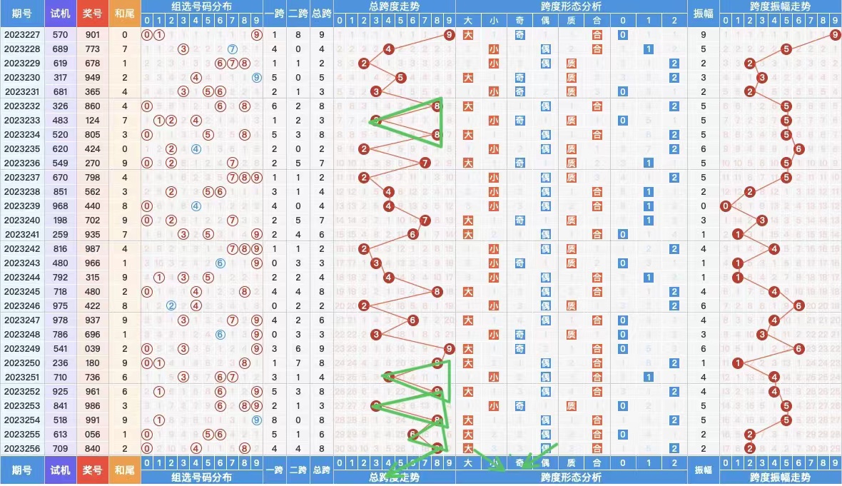 本期继续关注3路跨,综合分析本期关注跨度2-3-7