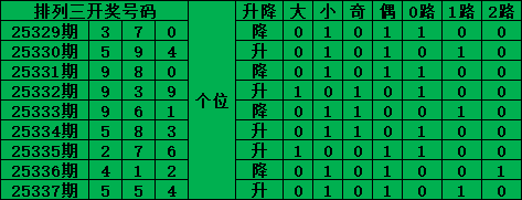 012路分析,上期是2路,本期选择0路/1路:0/4号。