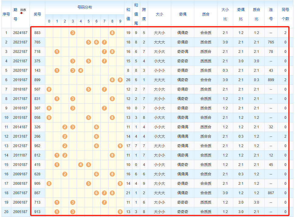 本文分别通过三个方面对本期排列三进行深度分析,这三个方面分别为:一:历史追随、二:往年同期数据、三:近期百十个遗漏值情况。
