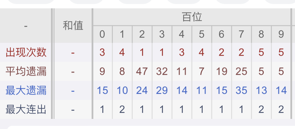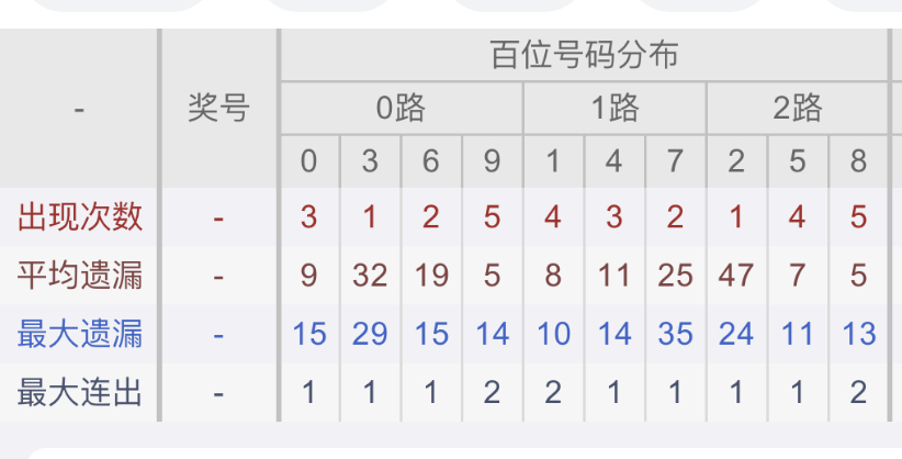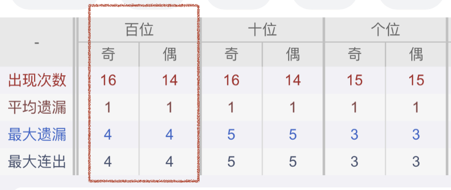 从近30期数据我们可以看出百位1是热码,这个冷热码数据我们结合之后的分析再利用它