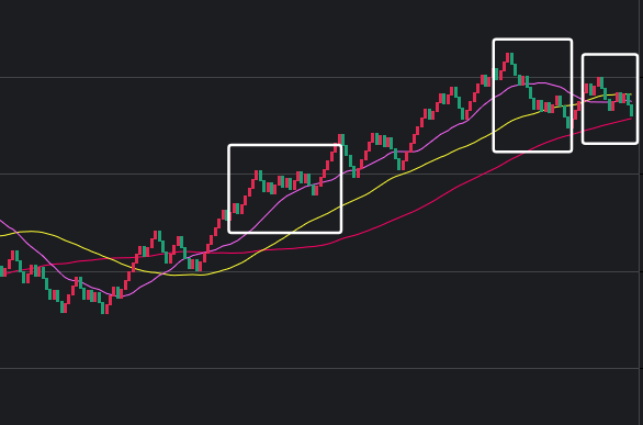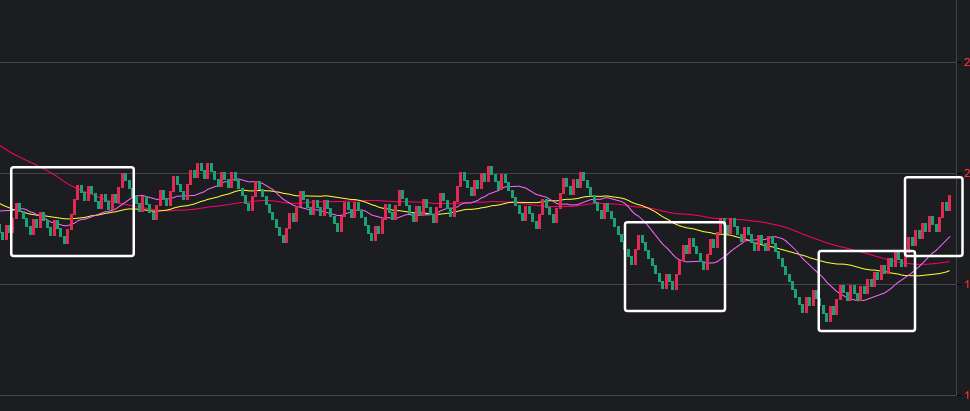 可以看到一些规律,在白框中,如果一致,那么接下来这些跨度也会出。