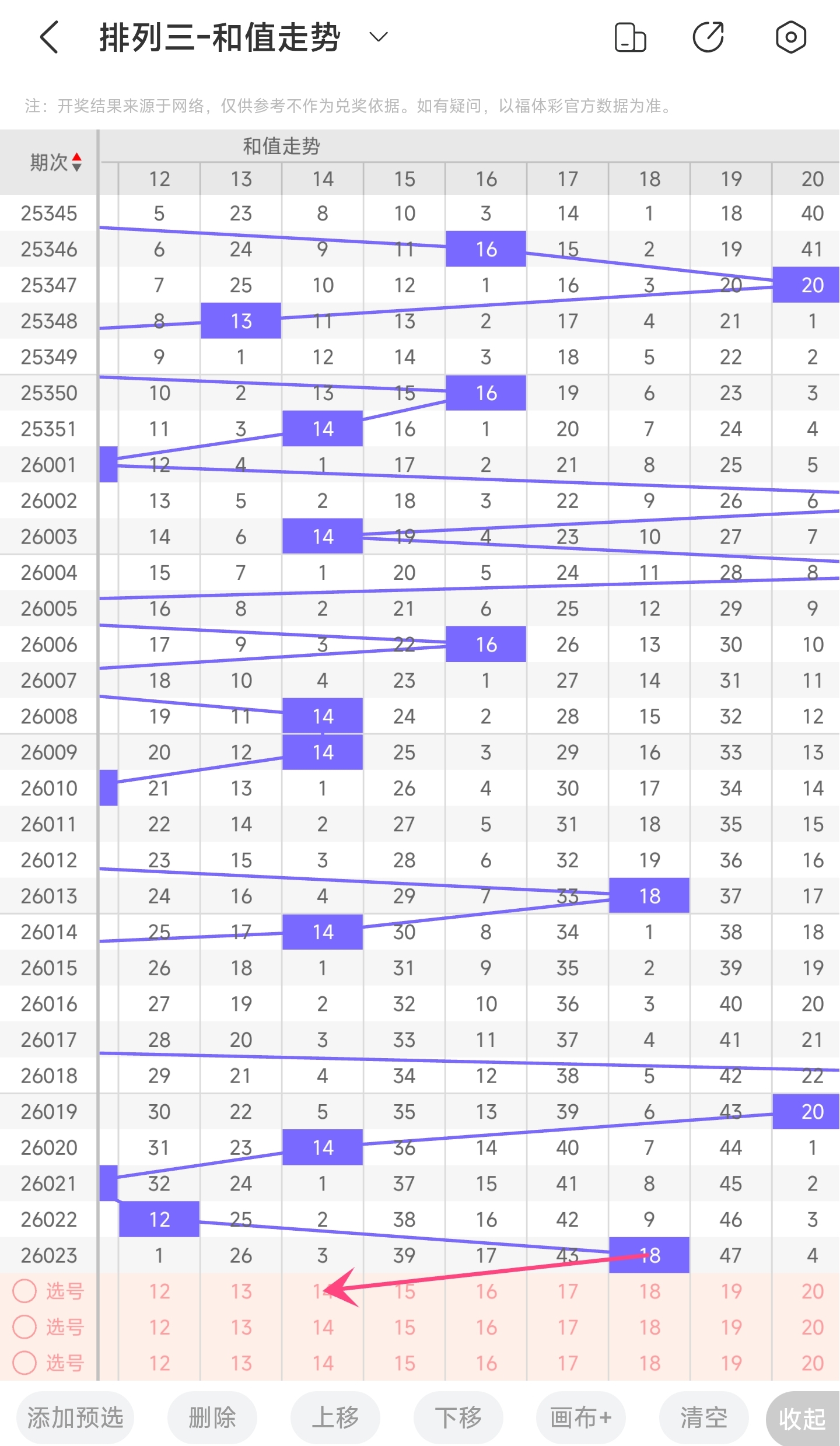 二、通过和值走势分析: