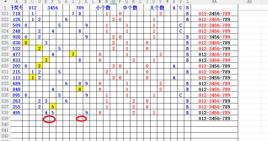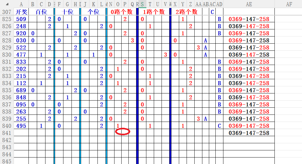 如上图56,012路分析0路出号的概率还是很大,本期可以0路号入手做胆0369中选;看好369胆码