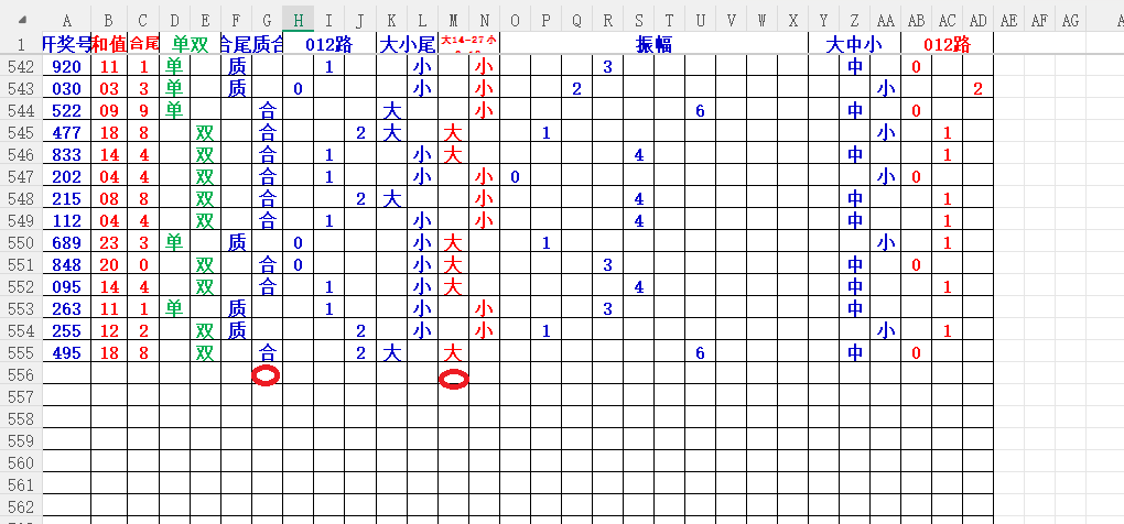 如上图2,012路分析01路尾走比较好,关注34567尾;