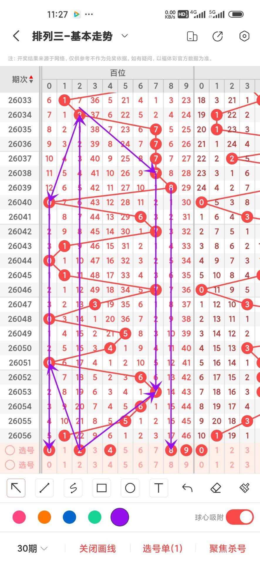 2025357期,上期百位开出奇数1,我们从5000期,走势图来分析012路下号和最大遗漏数据,目前0路开出194次,1路开出160次,2路开出156次,通过走势我们可以看出在500期内小号依然热度很高。重点关注小号防大号回补,,在从遗漏方面看。0路遗漏总数是176,再来看1路遗漏总数是112,在回过头来看2路号码遗漏总数是116,目前遗漏方面遗漏最大的是0路号码176次,通过上面的走势分析我们可以看出,目前百位在冷号阶段的是289,在热号状态的是小号0135可以作为防守防,防小号继续下号,具体看走势图