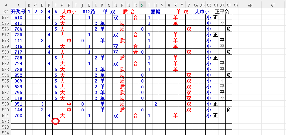 如上图2,大中小分析来看,中小数尾3456尾,可以考虑定345尾。