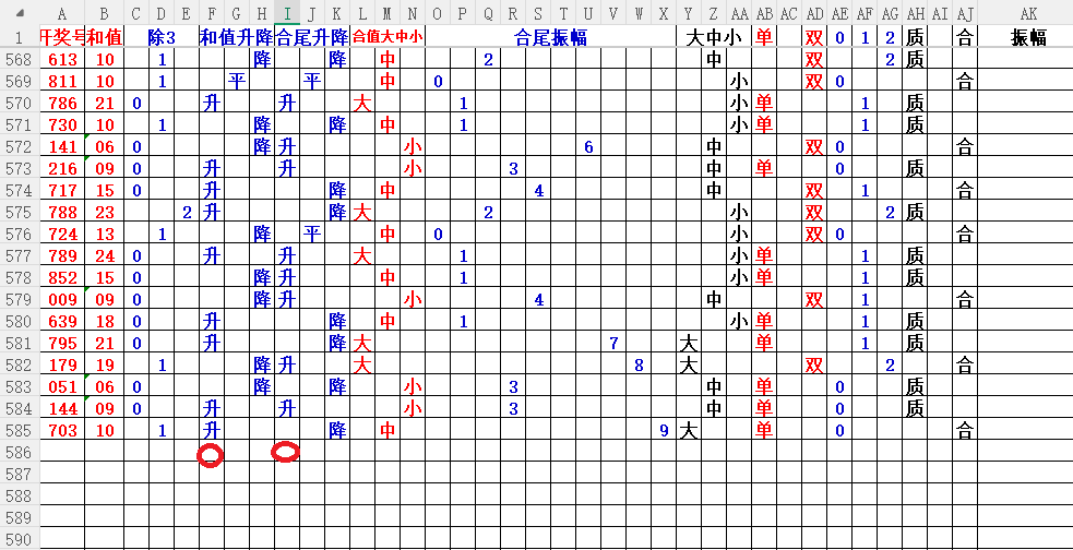 如上图3,和值升平降分析,和值降的概率大,大于10和值。