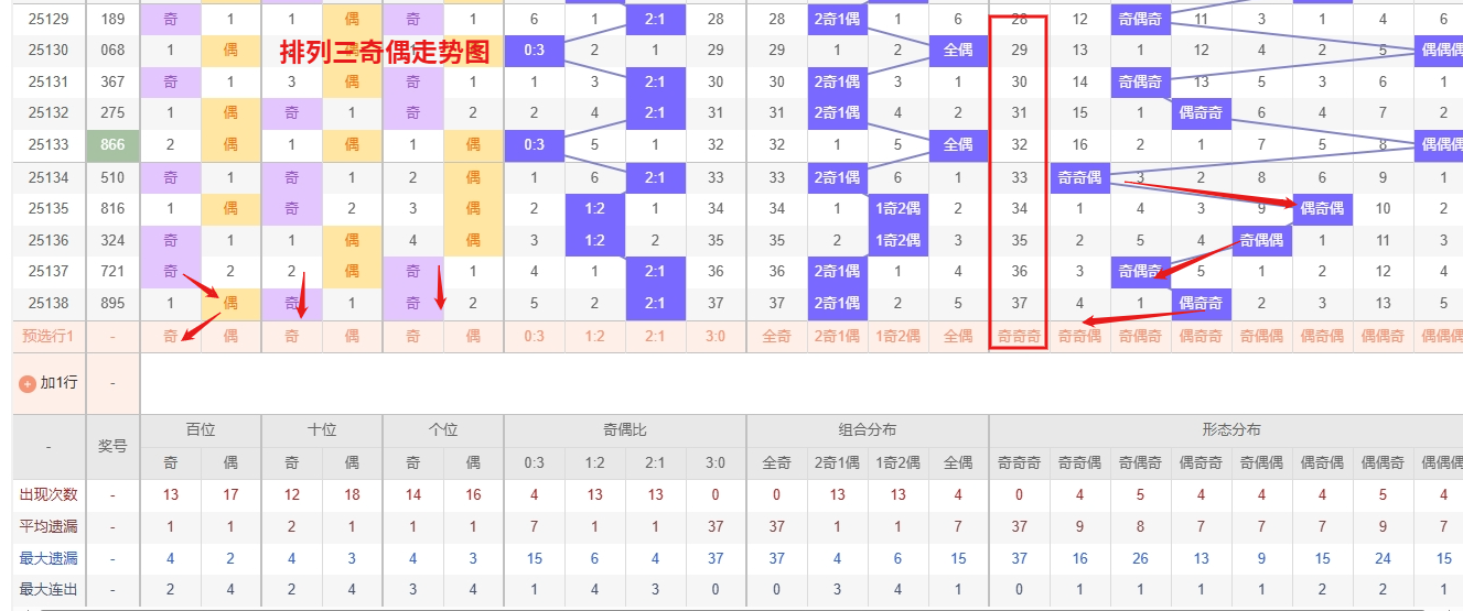 排列三奇偶走势图