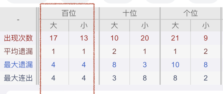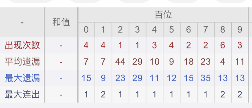 从近30期数据我们可以看出百位1是热码,这个冷热码数据我们结合之后的分析再利用它