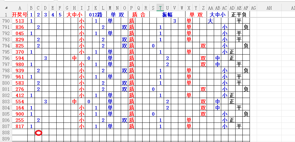 如上图7,012路分析-1路出号的概率还是很大,本期可以从1路号入手4代表78