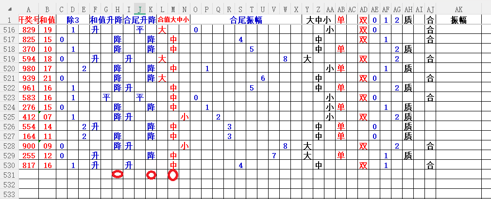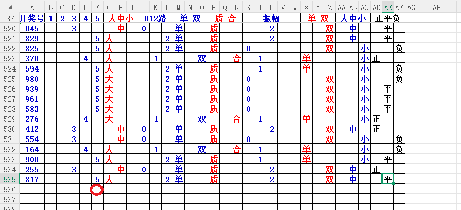 如上图2,大中小分析来看,中小数尾3456尾,可以考虑定3456尾。