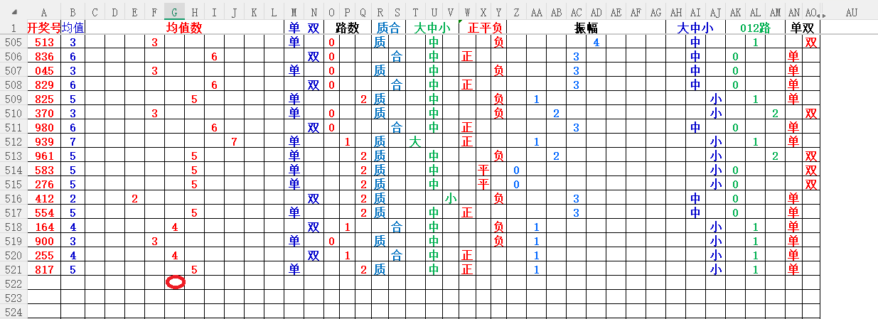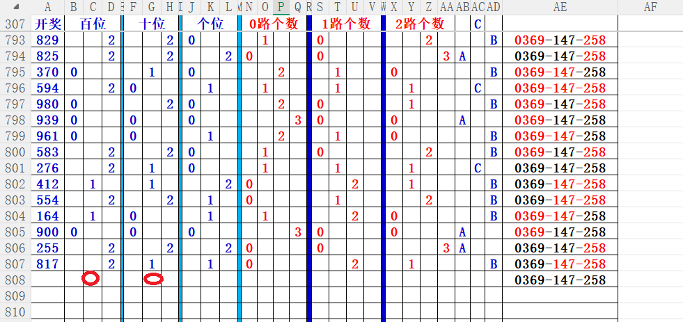 如上图56,012路分析0路出号的概率还是很大,本期可以0路号入手做胆0369中选;看好369胆码