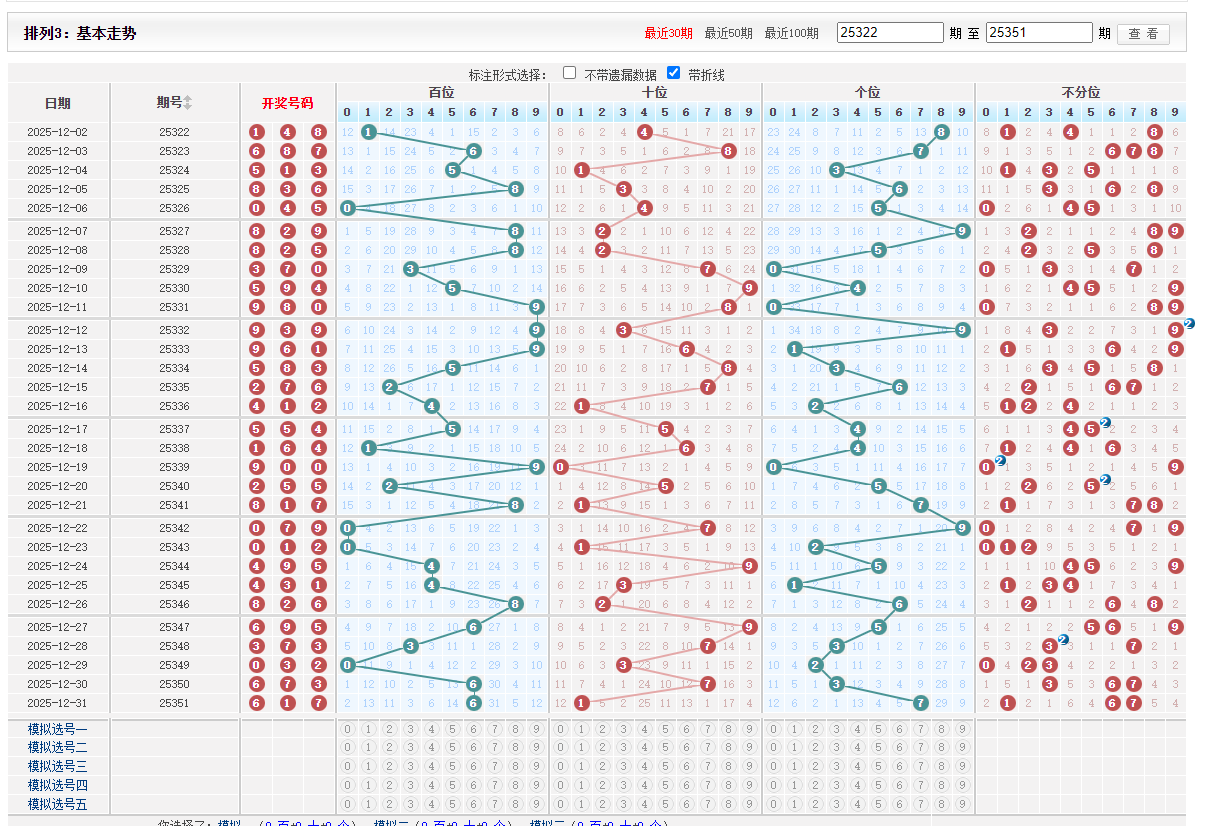 排列三大小号码分析数据统计图表
