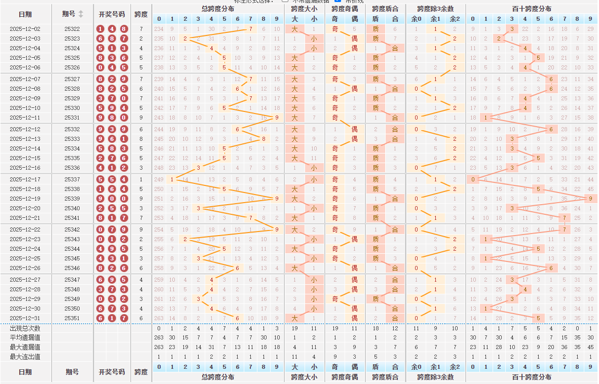 排列三跨度分析数据统计图表