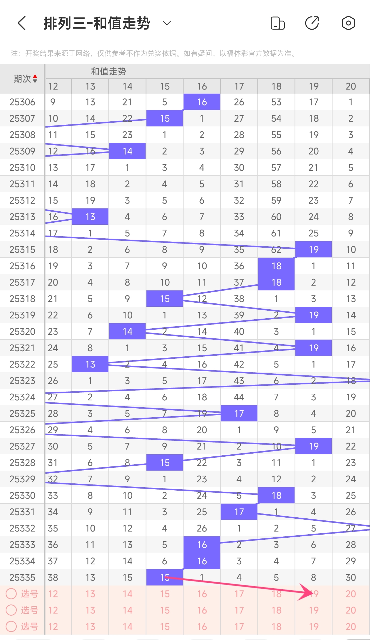二、通过和值走势分析: