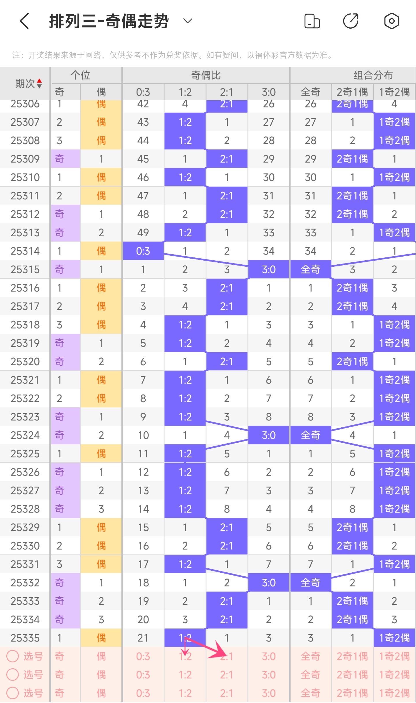 三、通过奇偶走势分析: