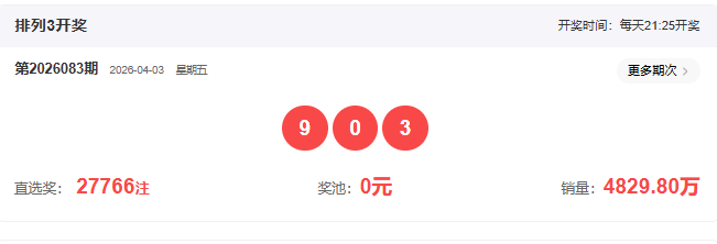 2026084期体彩排列三号码推荐:
