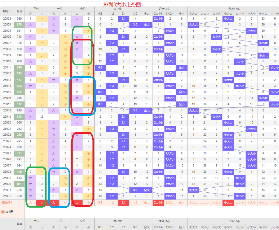 上一期012路个数比为2:1:0,是01路的号码组合,上期断掉2路的号码,本期的号码以两路的组六组合号码为主,本期0路的号码可能会出现,本期应该会有1路的号码,本期以01的组六组合号码为主,防02路和12路的组合,侧重01路的号码组合