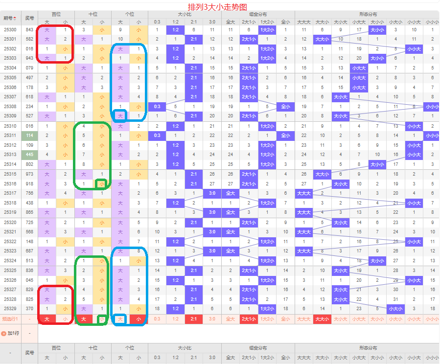 上一期大小比为1:2,两小的号码组合,近五期大号出8次,小号出7次,大小号码出现较平均,上一期是两小的号码组合,本期侧重两大的号码组合,百位侧重大号码,十位侧重大号码,个位侧重小号码,侧重大大小或者小大大的号码组合,根据大小形态五码定位56789/56789/01234或者01234/56789/56789