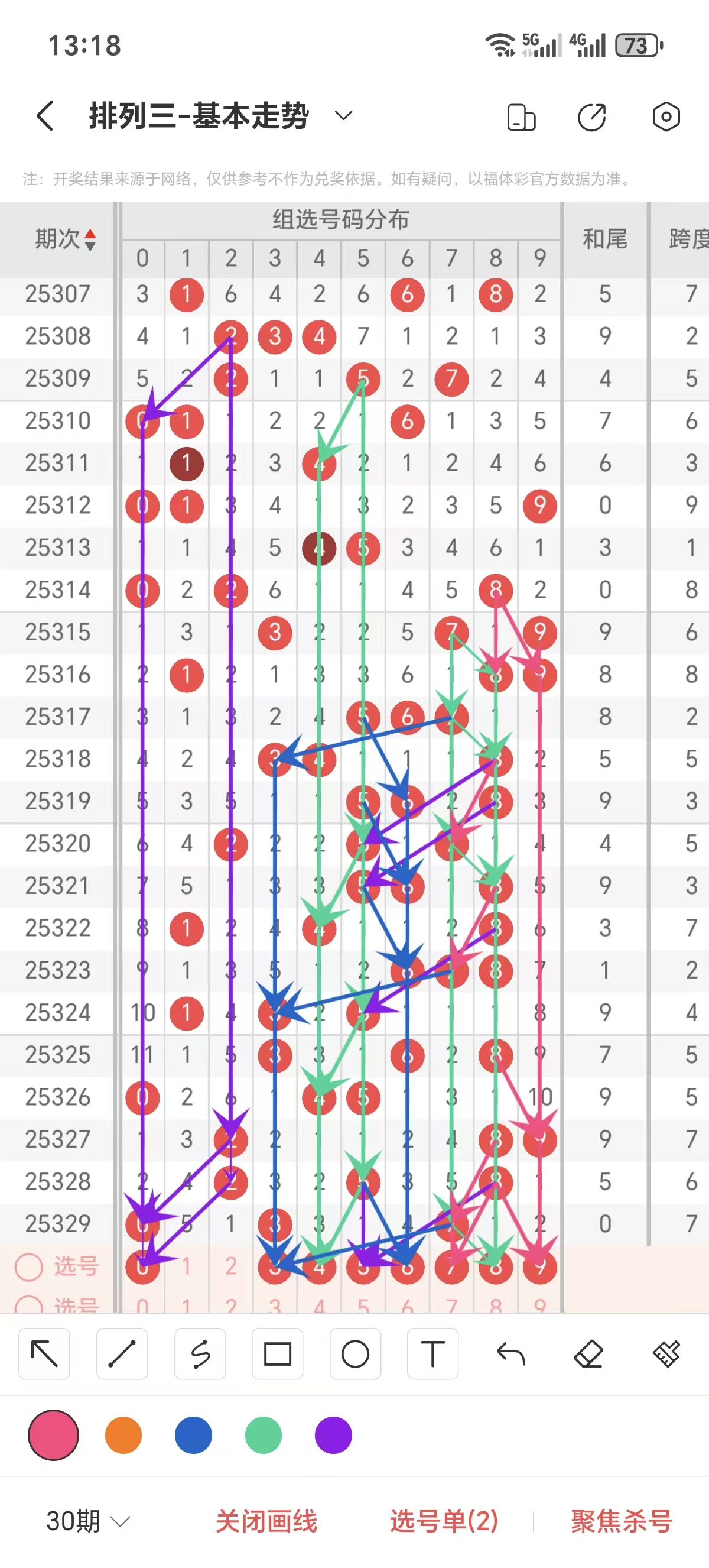 从分析图来看号码走势位置较好的是2路号码,如果是02路的号码组合,两个2路搭配一个0路的组六组合的号码总共是12个,两个0路搭配一个2路的组六组合号码是18个,总数为30个,如果是12路的组六号码组合总数为18个,本期主打12路防02路和01路的号码组合。