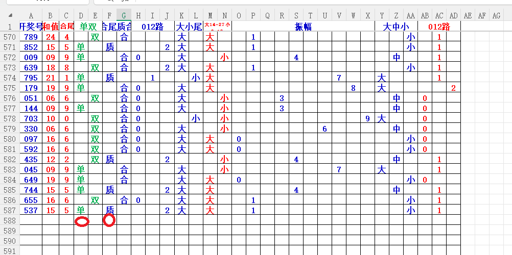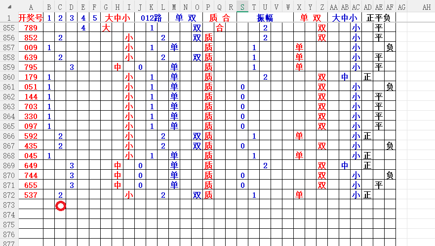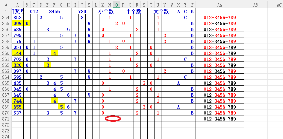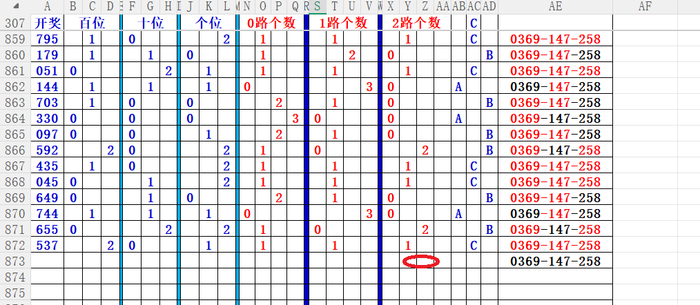 如上图56,012路分析0路出号的概率还是很大,本期可以0路号入手做胆0369中选;看好369胆码