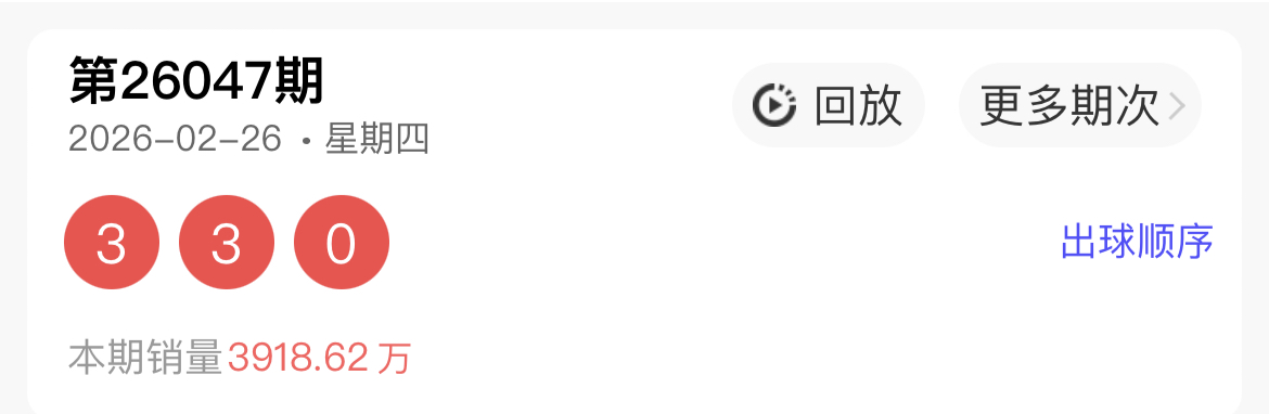 第047期排列三开出的号码为330,和值6,奇偶比为2比1,大小比为0比3,跨度为3,012路为百位0路,十位0路,个位0路,我们分析百349,十位124,个位257,我们对了1个位置,这次我们要继续加油,本期我们分析推荐组选3码、直选以及6分运气的一组单挑直选