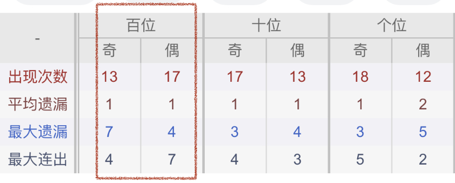 从近30期数据我们可以看出百位1是热码,这个冷热码数据我们结合之后的分析再利用它